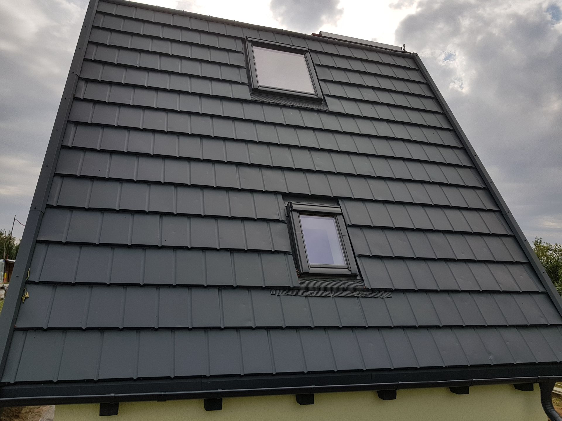 Profilul distinct al modulelor de tigla metalica Novatik asigura o mare stabilitate intregului acoperis, iar tonurile de culoare sunt perfect armonizate.